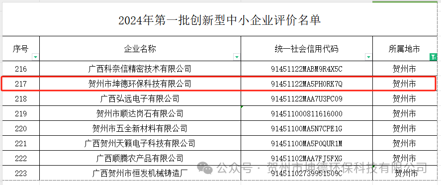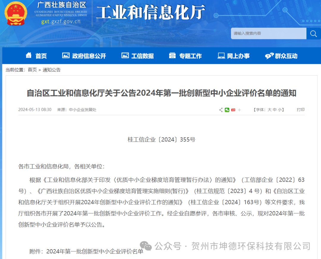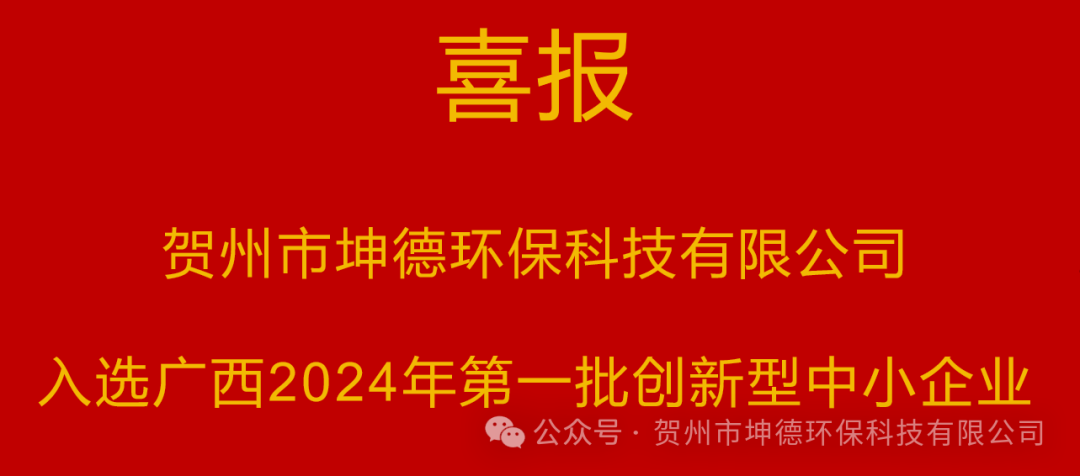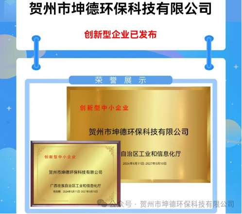 賀州市坤德環(huán)保科技有限公司入選廣西2024年第一批創(chuàng)新型中小企業(yè)