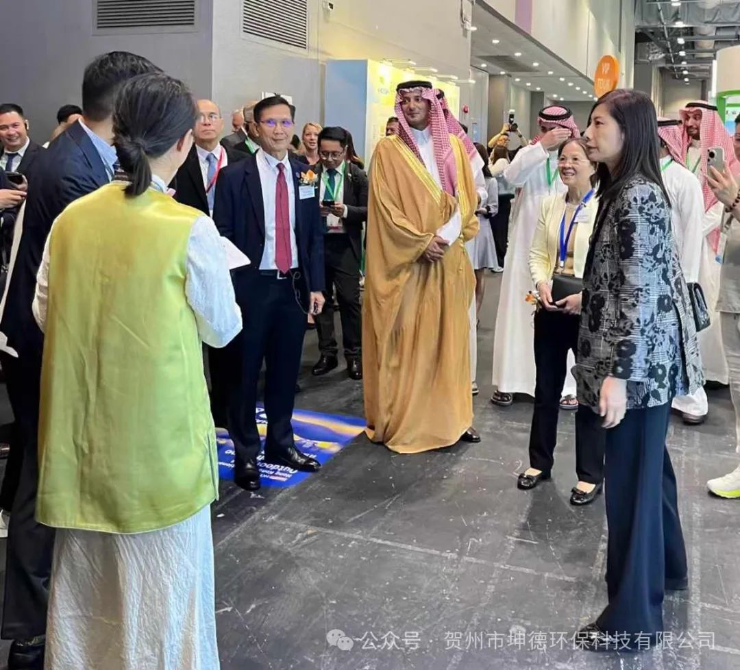 中國生態(tài)環(huán)境部黨組書記、副部長孫金龍先生,香港貿易發(fā)展局總裁方舜文女士,老撾自然資源與環(huán)境部副部長Mr Phouvong Luangxaysana等代表團成員到坤徳公司展區(qū)了解企業(yè)狀況并拍照留念。